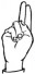 На ћирилици написано КРИСТИЈАН БЕЛЕНЗАДА састоји се из 18 слова [?]. Исписано ћириличном једноручном азбуком за глувонеме: